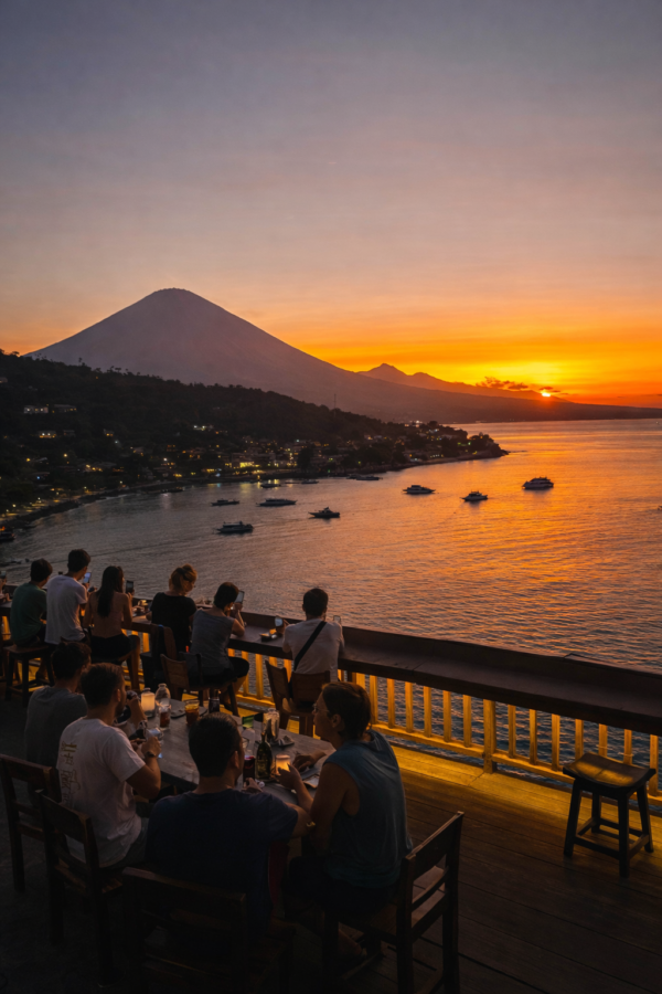 Sunset in Amed is a daily highlight. Elevated viewpoints such as Sunset Point offer panoramic views of the coastline with Mount Agung visible on clear evenings.
